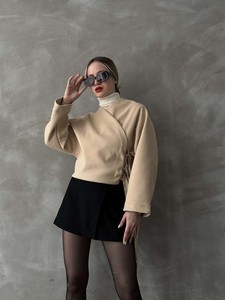 Bağlamalı Kısa Toptan Ceket - Taş | TOPSHOW | F1604