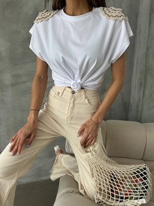 Topshow Beyaz Omuzu Dantelli Toptan T-Shirt