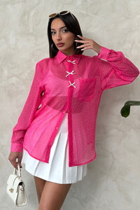 Fiyonk Detaylı Puantiyeli Şifon Toptan Gömlek- Taş | TOPSHOW | F1881