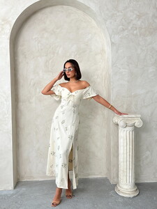Topshow Haki Desen 1 Kolu Fırfırlı Bağlamalı Toptan Elbise