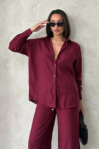 Sim Çizgili Toptan Gömlek - Bordo | Topshow | F1729