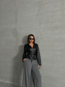 Fermuarlı İnce Deri Toptan Ceket - Siyah | TOPSHOW | F1771