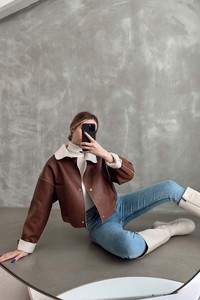 Topshow Taba Nubuk Yakası Kürklü Toptan Mont | F1577