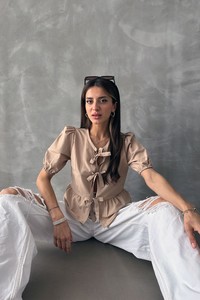 Topshow Taş Önden Bağlamalı Poplin Toptan Bluz
