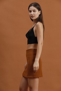 Yırtmaç Detaylı Mini Toptan Etek - Kahve | TOPSHOW | F1351